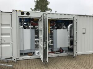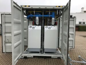 2 MegaWatt gasgestookt HR verwarming in één 20 voets-zeecontainer. De Senatoren zorgen ervoor dat het Gas Ontvangst Station blijft functioneren zonder te bevriezen.
