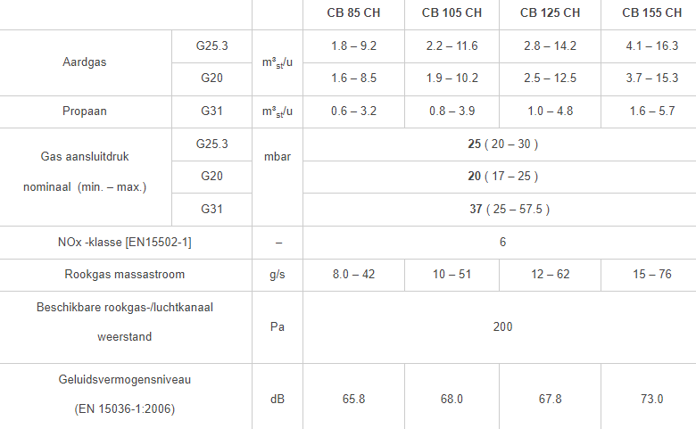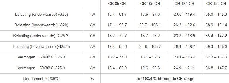 - Groot modulatiebereik waardoor het vermogen makkelijk aan te passen is aan de vraag naar warmte;
